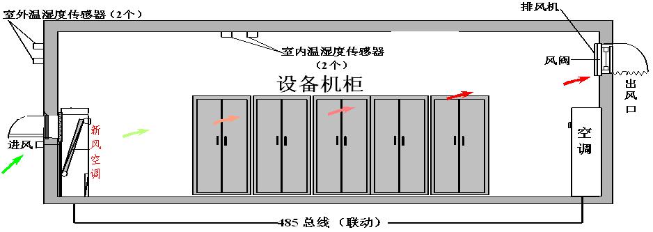 泰通科技为现有机房改造,提供了一套集新风控制、智能换网、集中控制、联动管理、远程WEB控制为一体的基站机房新风环境智能控制解决方案。该方案针对铁路和通信行业基站机房利用室外自然冷源、实现节能设计而开发的机房专用新风环控产品。