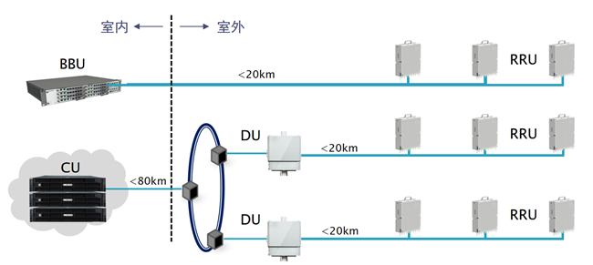 CU-DU可集中或分离部署,更适合分布式部署场景。CU集中部署,配合室外型DU,更适合于长大隧道等特殊场景覆盖。