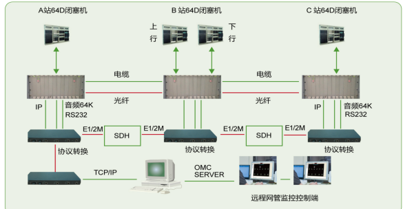 采用采用二乘以二取二模块冗余备份; 具有电缆-光缆模式和纯光缆模式; 光缆模式可以配置(音频64K、光纤、RS232、以太网)中任意两路; 适应既有和新建线路。
